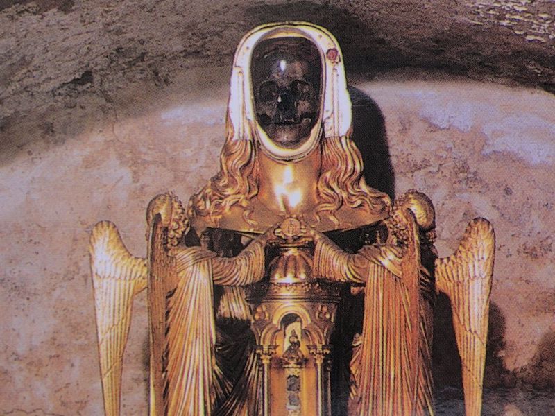La más asombrosa de las reliquias de María Magdalena es su calavera, que podemos encontrar en el sur de Francia, en la población de St. Maximin-la-Sainte-Baume. Su culto en Francia está conectado con la leyenda del Santo Grial y con la historia de su huida de Tierra Santa.