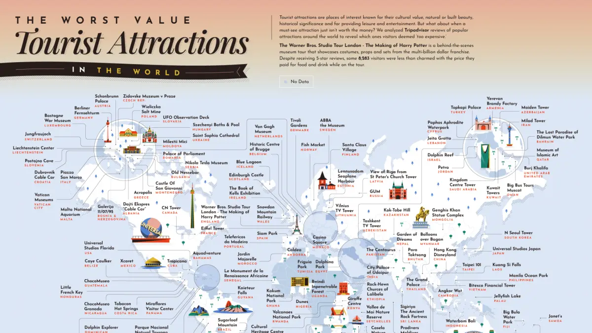 El mapa de las atracciones turísticas peor valoradas del mundo por los turistas…