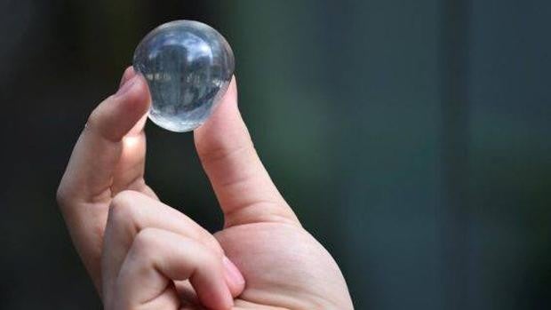 Envase desarrollado por Notpla, que se puede comer directamente para beber el agua del interior. –