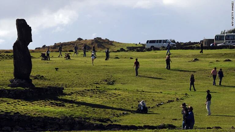 Los nativos de la isla, sin embargo, creen que que los moáis, dirigidos por el maná, o la magia, caminaron por sí mismos a través de la isla. Antes de la pandemia, 80.000 visitantes se asombraban ante la cantera de Rano Raraku, una especie de cementerio de moáis.