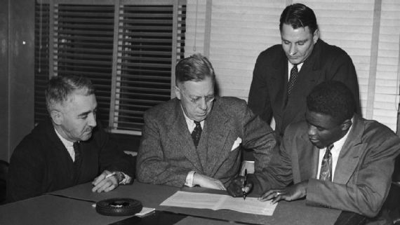 Branch Rickey, mandatario de los Dodgers, se acercó a Robinson para ofrecerle un contrato deportivo. Entonces, Robinson debutó en el equipo Montreal Royals, filial de los Dodgers, en el que consiguió el título de la Little World Series.