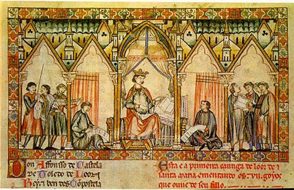 Miniatura que muestra a Alfonso X el Sabio dictando.