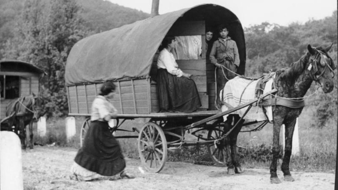 Caravana de familia gitana en Alemania en 1935. Bundesarchiv.