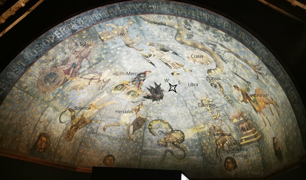 Además, la pintura original contenía las doce constelaciones zodiacales, que son las que el Sol va ocultando al desplazarse alrededor de la Tierra, y en un solo día no pueden contemplarse todas. Por tanto, lo representado no puede corresponder con el cielo visible desde Salamanca.