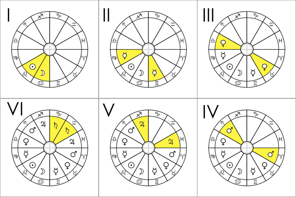 El resto de los planetas estarían junto a sus respectivas casas nocturnas: la Luna en Cáncer, Venus en Tauro, Aries en Marte, Júpiter en Piscis y Saturno en Acuario.