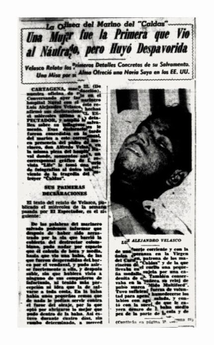 Tiempo después, Velasco se acercó a las oficinas de un diario colombiano muy popular, y ofreció venderles la historia de su aventura en el mar. El periódico aceptó y comisionó a Gabriel García Márquez, uno de sus periodistas, para que trabajara la historia.