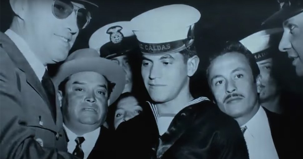 El 28 de febrero de 1955, ocho miembros de la tripulación del destructor A. R. C. Caldas cayeron al agua. Luis Alejandro Velasco fue el único superviviente; los otros siete perecieron ahogados. El gobierno del dictador colombiano Gustavo Rojas Pinilla atribuyó el accidente a una tormenta en el Caribe, pero nunca hubo tal tormenta.