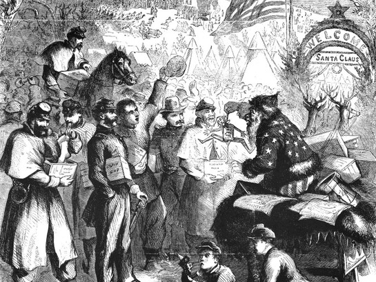 (En enero de 1863, Thomas Nast retrató a Santa Claus entregando regalos a las tropas de la Unión en Washington, D.C.)