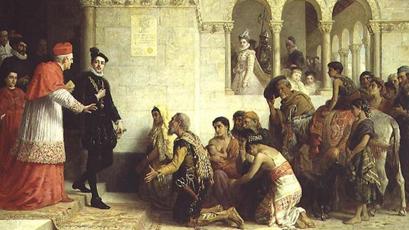 Una pragmática de estos Monarcas en 1499 estableció que «si fueren hallados o tomados, sin oficio, sin señores, juntos… que den a cada uno cien azotes por la primera vez y los destierren perpetuamente de estos reinos, y por la segunda vez que les corten las orejas, y estén en la cadena y los tomen a desterrar como dicho es…».