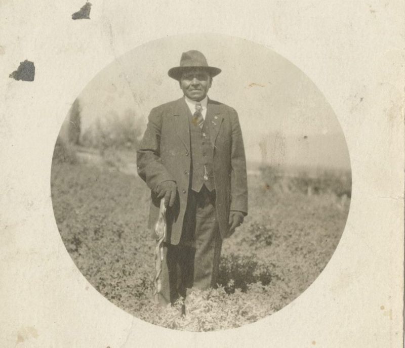 Frank Timbimboo Warner «Beshup» sobrevivió la masacre. Esta foto fue tomada en 1917, en el lugar donde murió su madre.