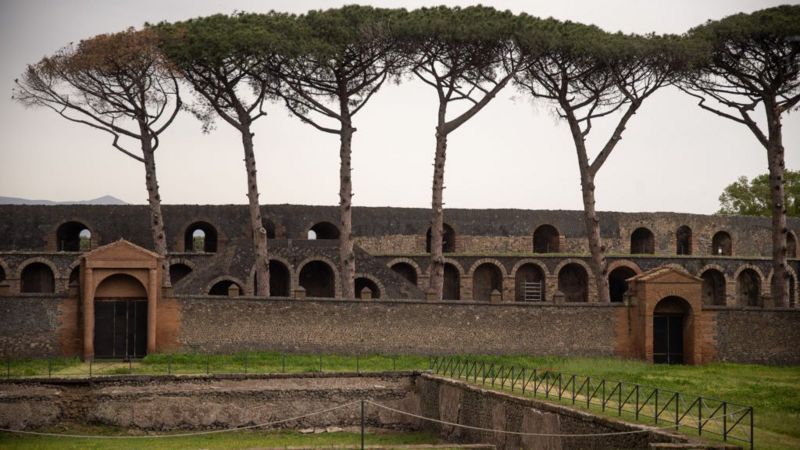 Hoy en día, los visitantes del sitio arqueológico de Pompeya pueden caminar dentro y alrededor del anfiteatro.