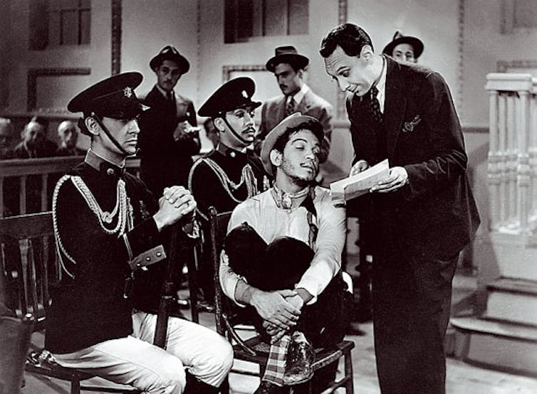 Fotograma de la escena de juicio en Ahí está el detalle, de 1940.