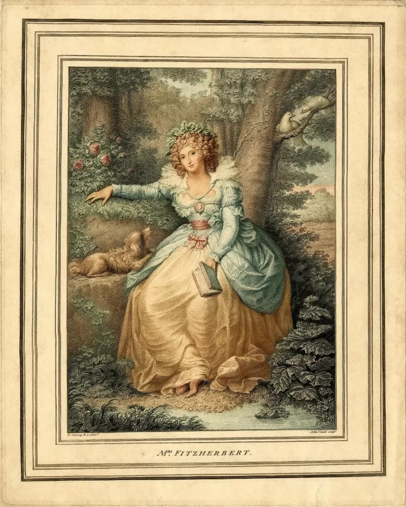 Maria Fitzherbert era una hermosa viuda que inicialmente intentó rechazar al príncipe pero él la convenció, llegando a amenazar con suicidarse si no lo aceptaba.