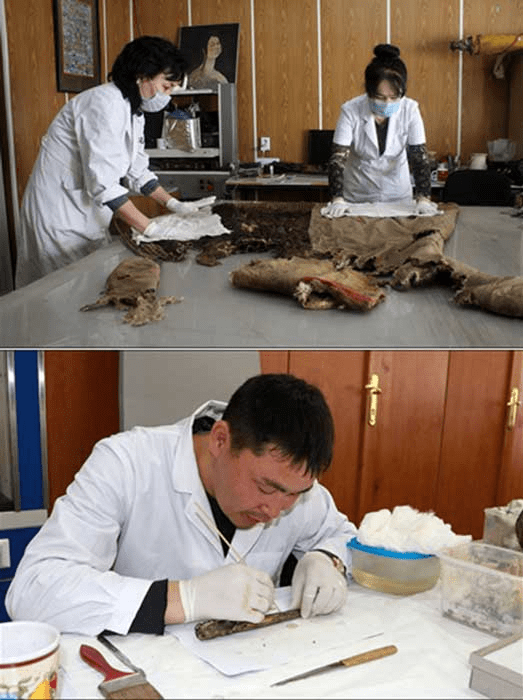 ‘Como la tumba fue excavada en un entorno fresco, la tela y el fieltro no experimentaron una reacción biológica,’ comentó Galbadrakh Enkhbat. ‘Parecía como si apenas hubieran sido utilizados ayer. Si hubiesen sido enterrados directamente en el terreno, no habría quedado nada.’