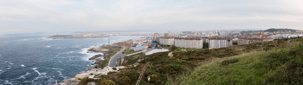 Vive en una casa de cinco pisos frente al mar, en una concurrida calle de La Coruña.
