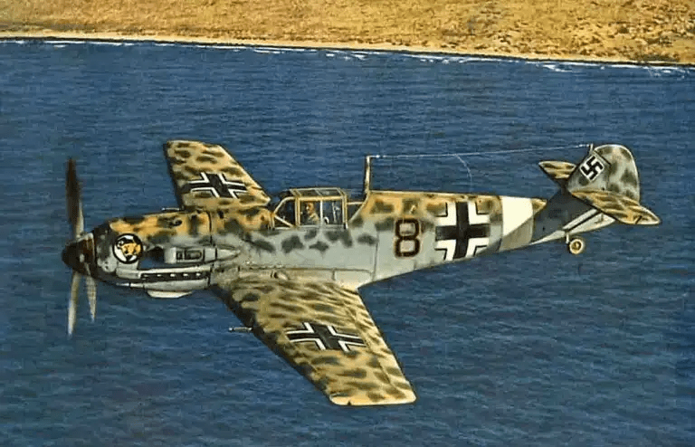 De haberse cruzado un poco antes la relación hubiera resultado menos amistosa al ser adversarios, pero el germano les había visto pasar cuando estaba repostando en un aeródromo y aunque despegó rápidamente para interceptarlos, cambió de opinión al comprobar su estado de indefensión.