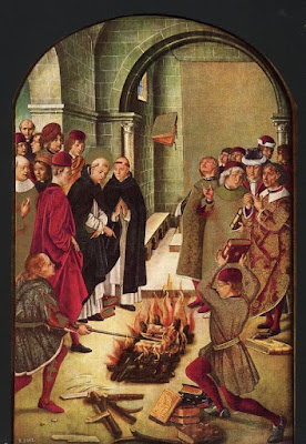 Siglos después la práctica continuó, aunque la Iglesia Católica además de quemar los libros pasó a quemar a sus autores, como a Jan Hus en el siglo XV o a Giordano Bruno en el XVII.