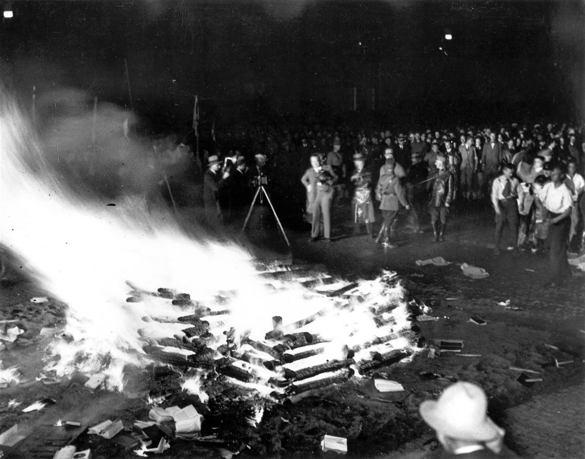 Exactamente el 10 de mayo de 1933 fueron quemados en las plazas de muchas universidades miles de ejemplares de autores de la talla de Karl Marx, Sigmund Freud, Erich Maria Remarque, Carl, von Ossietzky y Kurt Tucholsky.