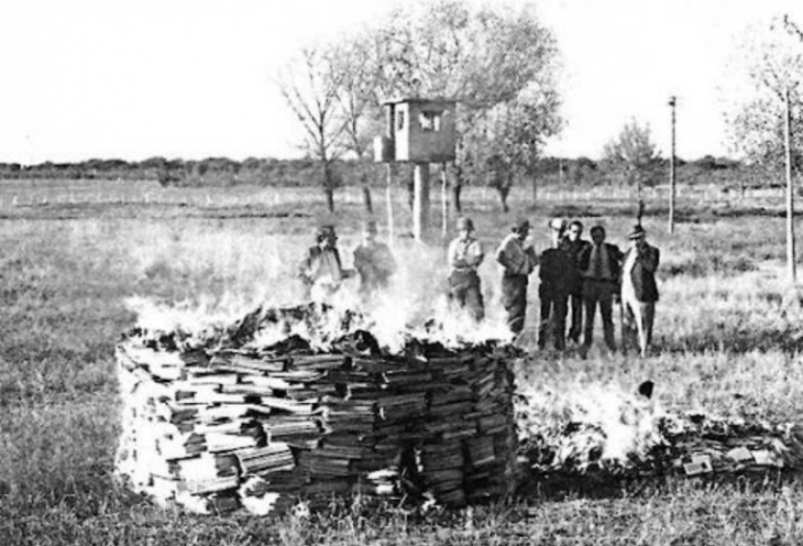 De hogar en hogar, los funcionarios se apoderaron de los libros y los hicieron arder en una pira, para sorpresa y alegría de quienes no los habían leído.