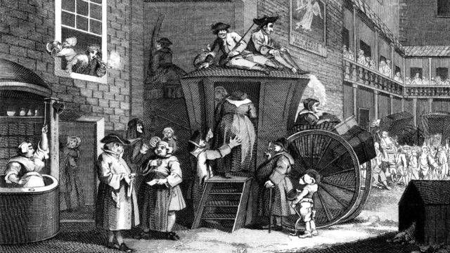 «Si un hombre con su caballo se aloja en una posada, además de pagar la factura debe dar al menos un chelín al camarero y seis peniques a la mucama, al mozo de cuadra y al limpiabotas, lo que suma media corona».