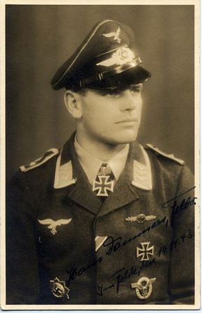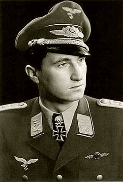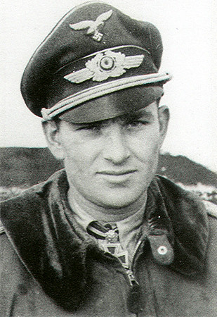 Fue herido en cinco ocasiones y se vio obligado a saltar en paracaídas en otras cuatro. Estando destinado en el frente del este, la aviación rusa atacó la base aérea en donde prestaba sus servicios.