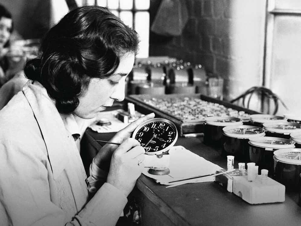 En aquel momento en que la producción en masa se desplegaba como determinante social, las fábricas se llenaron de trabajadores y trabajadoras para crearlo: hacer relojes ya no era una tarea artesana y esporádica, quien no tuviera un reloj empezaba a estar perdido en un mundo que se planteaba cada vez más ligero.