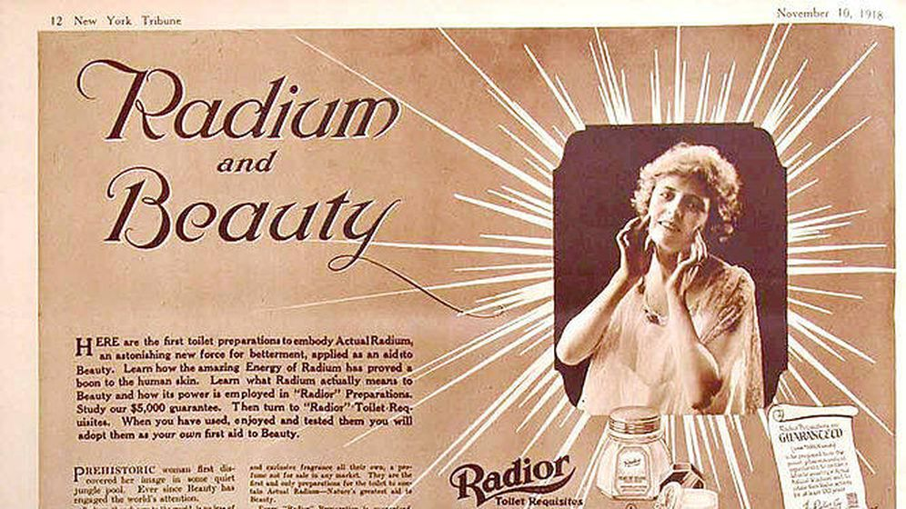 A principios del siglo XX, cientos de miles de personas bebieron agua tónica con infusión de radio, por ejemplo, o se cepillaron los dientes con pasta dental con radio y algunas mujeres hasta usaron cosméticos con radio que prometían una piel brillante. Desde luego, lo cumplía, pero la idea era de todo menos brillante. Mezclado con la pintura, el radio resulta que seguía brillando incluso tras la exposición a la luz: ¡Éxito!