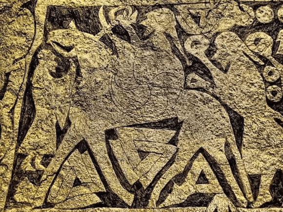 Entre los objetos donde aparece están un anillo anglosajón del siglo VIII d.C. conservado en el Museo Británico, un lecho de madera en el interior del Barco de Oseberg (barco funerario vikingo encontrado en 1904 en Noruega), en una de las Piedras de Stora Hammars (cuatro estelas de entre los siglos VIII-IX d.C. en Gotland, Suecia), y en la Piedra de Tängelgårda, una estela del siglo VIII d.C. también en Gotland.