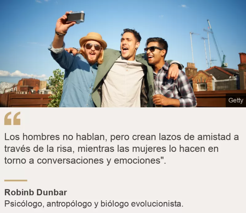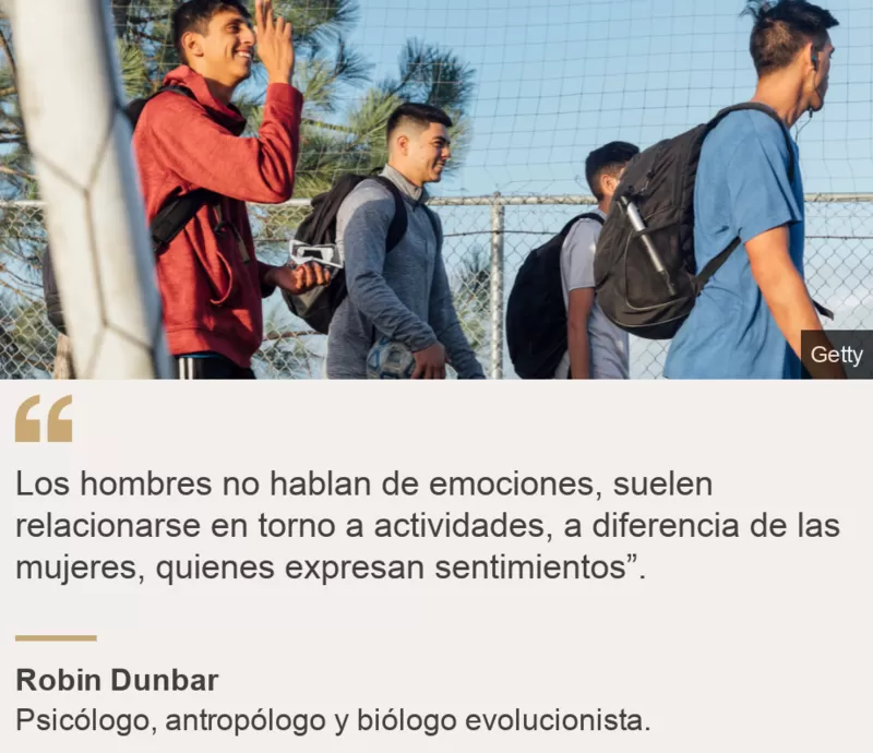Los hombres no hablan tanto de emociones, suelen relacionarse en torno a actividades, a diferencia de las mujeres que expresan sentimientos. Por eso las mujeres suelen tener amistades de mayor calidad.