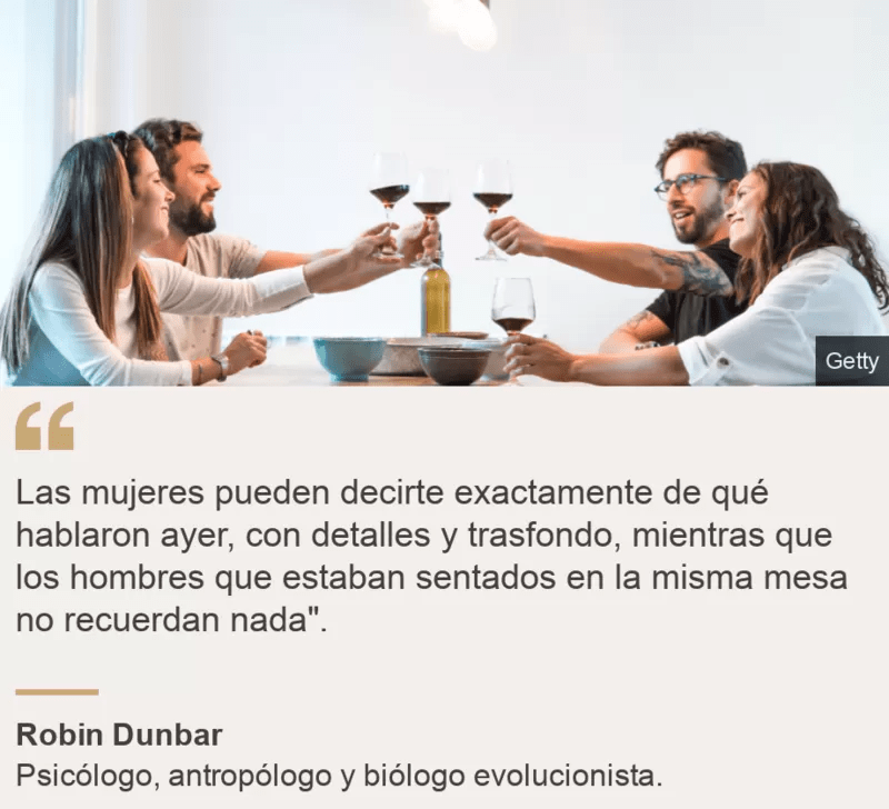 Por eso las mujeres pueden decirte exactamente de qué hablaron ayer, con detalles y trasfondo, mientras que los hombres que estaban sentados en la misma mesa no recuerdan nada.