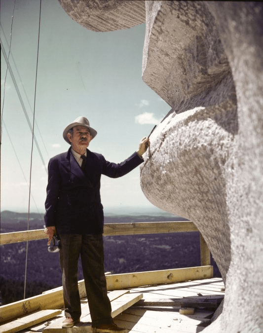 Para cuando se inició la construcción de este monumento, en el verano de 1927, Borglum tenía 61 años y un pasado tormentoso y confuso. Este hombre, nacido en Idaho en 1867, tenía fama de fabulador ya que frecuentemente cambiaba la historia de su vida a punto tal de citar a dos mujeres distintas como su progenitora desafiando el conocido apotegma de que madre hay una sola.