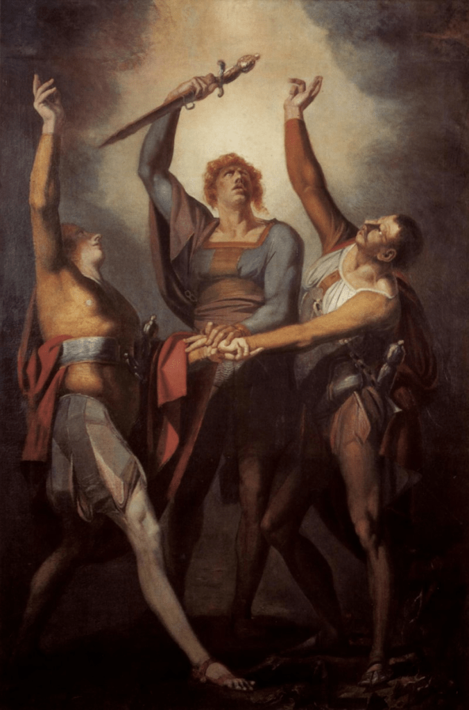 El juramento de Rütli suele fecharse en el año 1307, pero no aparece documentado hasta 1420, por lo que resulta imposible saber cuánto hay de verdad y cuánto de leyenda en él. Pero que nos interesa es que está estrechamente relacionado con la aparición del personaje de Guillermo Tell.