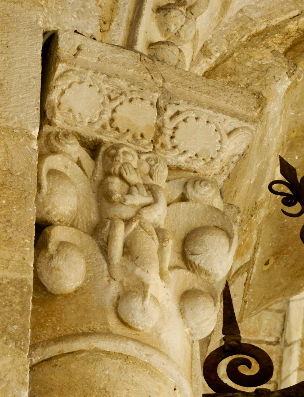Otras imágenes, como el personaje que se masturba mientras se acaricia la barba o la desnuda barbilla, aparecen ya en la escultura ibérica de Porcuna y se replican en canecillos, como el magníficamente conservado de San Martín de Elines (Cantabria), donde el onanismo parece coincidir con la gravedad del reflexivo pensador.