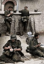 Para terminar, se despedían del sol con una cena ligera que les permitía resistir hasta la mañana siguiente. Así lo afirma David Westwood en su completísima obra ‘German Infantryman (2) Eastern Front 1941–43’: «La comida del mediodía ascendía a la mitad del total, la cena a un tercio, y el desayuno de la mañana siguiente a una sexta parte».