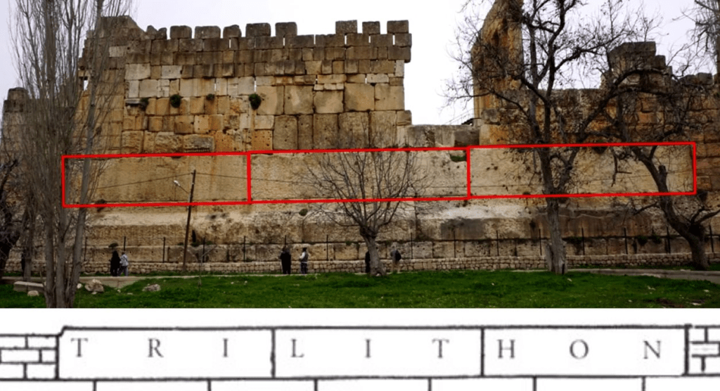 En ella se encuentran los tres colosales bloques conocidos como el “Trilithon”, bloques colocados horizontalmente en la base de una construcción, cada uno de los cuales mide del orden de 20 metros por 5 y por 4.