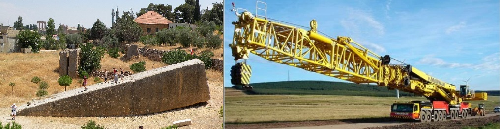 En la actualidad, la que es probablemente la grúa móvil más poderosa del mundo, una verdadera bestia de la ingeniería, la Liebherr LTM 11200-9.1, una grúa móvil, sobre ruedas, fabricada en 2007, capaz de levantar hasta 1.200 toneladas, podría hacerlo, y no sin algunas dificultades; pero “cuesta creer” que hace dos o tres mil años tuvieran nada parecido a ese monstruo mecánico; por tanto la cuestión es…