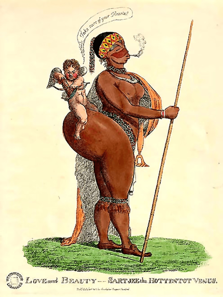 En Europa -fundamentalmente en Francia y Gran Bretaña- las imágenes desnudas de esa mujer negra de grandes nalgas y pubis llamativo quedaron como testimonio de lo que la socióloga Patricia Hills Collins llamó “representaciones de las ideologías racistas y sexistas que impregnan la estructura social que se convierten en hegemónicas, se consideran naturales, normales e inevitables. En este contexto, ciertas cualidades asumidas que se atribuyen a las mujeres negras se utilizan para justificar la opresión”.