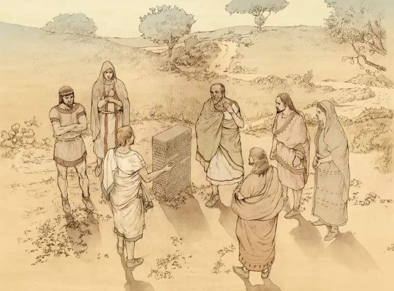En la línea 8 se mencionan explícitamente las fronteras entre ambas familias, y se regula el acceso de los Velthina a una tumba de su familia que está en terreno de los Afuna, y que es la zona en disputa. También se indica que la estela con la inscripción es propiedad de los Afuna.