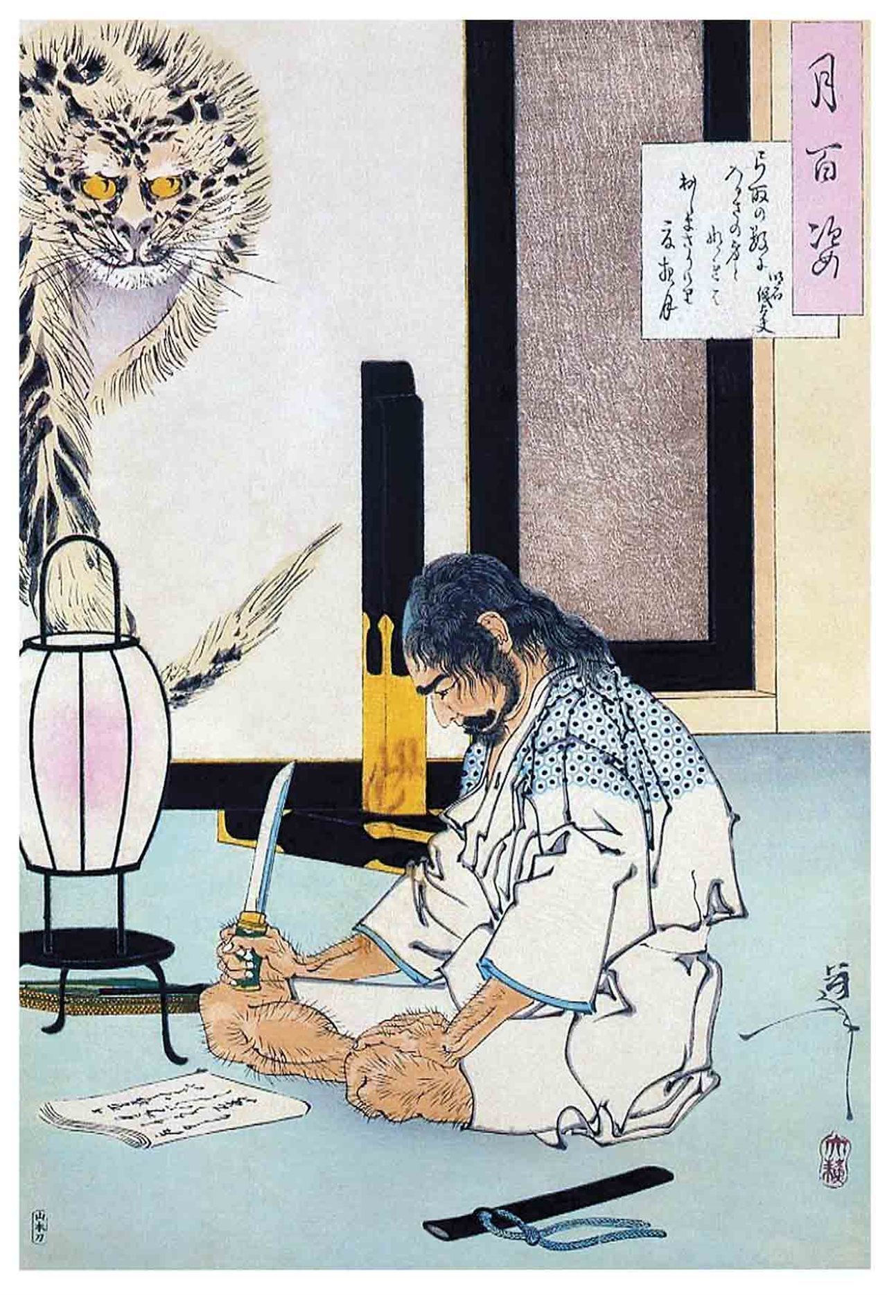 El ritual del seppuku, en muchas ocasiones, tenía un intrincado proceso: primero se debía beber sake y se componía un poema de despedida que se escribía en el dorso del abanico de guerra.