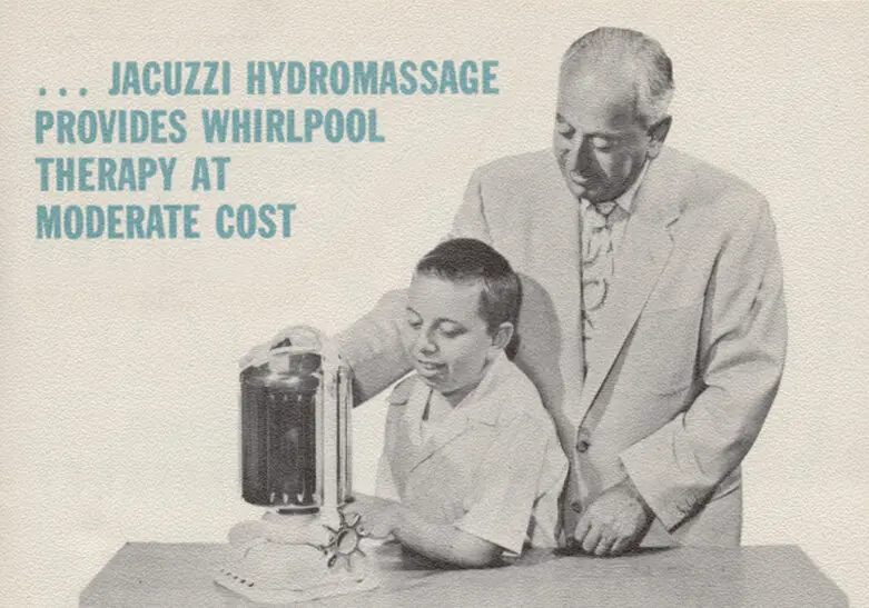 Puede que hoy por hoy, el jacuzzi —ese receptáculo de agua burbujeante conocido y amado en todo el mundo— esté diseñado para socializar en el patio trasero y sea un elemento imprescindible en yates, hoteles, chalets, fiestas de vacaciones de primavera y cruceros. Pero su tecnología fue concebida con una sola persona en mente: Kenneth Jacuzzi, un niño menor de 2 años, afectado por artritis reumatoide juvenil después de un caso severo de faringitis estreptocócica.