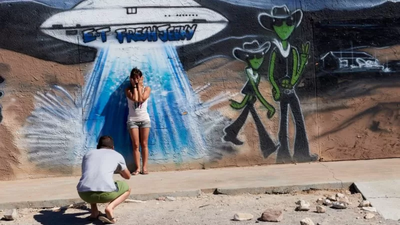 National Geographic(S.Combs)/BBC News Mundo — Cada año, la mitología del Área 51 atrae a turistas de todo el mundo. La gente acude la base aérea cerca de Rachel, Nevada (Estados Unidos), con la esperanza de ver extraterrestres.
