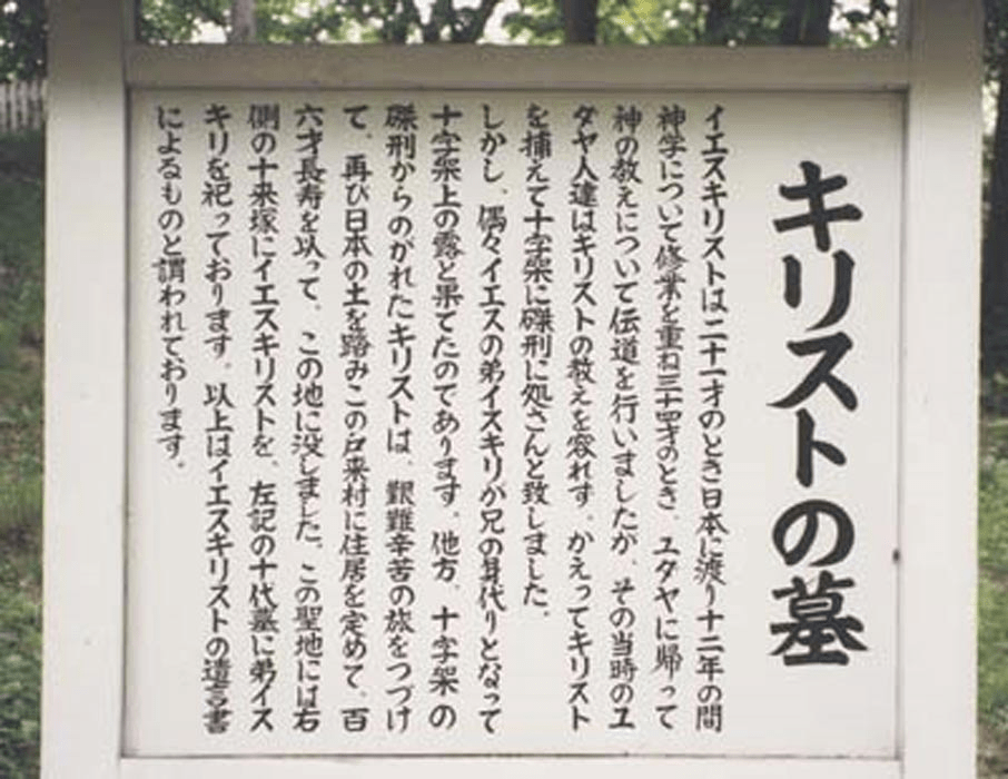 Algunos investigadores japoneses opinan que la historia de Jesucristo es diferente del relato comúnmente aceptado. Esta versión alternativa de la vida de Jesús cayó en el olvido hasta 1935, cuando Kiyomaro Takeuchi (Takenouchi) descubrió supuestamente un antiguo documento en la prefectura de Ibaraki (Japón).