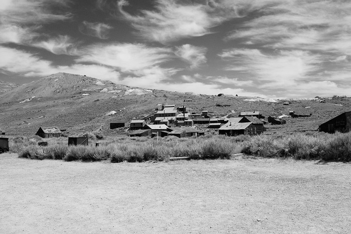 Hoy Bodie es un pueblo fantasma, «en deterioro suspendido», y es un parque del estado de California. La carretera de tierra sube por una ladera parda, en la que apenas crecen unas matas de salvia, hasta una hondonada entre montañas. Allí aparece un centenar de casas de madera, como un corro de champiñones, con sus tejados a dos aguas, las paredes torcidas, los porches desvencijados: da miedo estornudar.