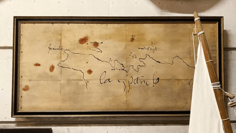 La guía nos explicó que el primer cuadro de Colón se hizo cien años después de su muerte y que la profusión de retratos solo puede darnos una idea de cómo era. Lo más impresionante de esa sala es el ancla de la nao Santa María, que fue encontrada en Haití, cerca del lugar donde naufragó.