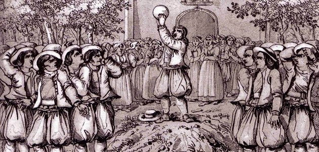 Solía practicarse durante las fiestas de los pueblos y era un juego muy conocido, jugado por las clases sociales más bajas, aunque algunos nobles también jugaban. La pelota estaba hecha de de cuero y estaba rellena de heno, aunque a veces era de madera, y no tenía una medida estándar.