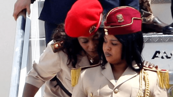 Había un secreto: las de uniforme azul eran verdaderas soldados, guardaespaldas que ejercían su oficio; las de uniforme caqui, eran las integrantes de su harem que viajaban al exterior camufladas.