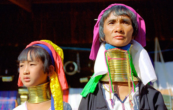 40 CENTÍMETROS: Los miembros de la tribu Padaung, de Birmania, se alargan el cuello poniéndose argollas encimadas que estiran esa parte del cuerpo y hacen bajar los hombros, con el correr de los años. La longitud mayor que se conoce ha sido de 40 centímetros.