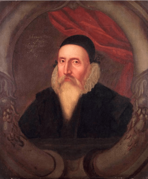 El Dr. John Dee, (1527-1609) fue un ocultista, matemático, astrónomo y astrólogo que vivió en el barrio de Mortlake, al oeste de Londres, durante la mayor parte de su vida.