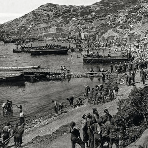 Las playas en Suvla se transformaron poco a poco en fondeaderos, pantalanes y almacenes portuarios. La disentería, de inicio a fin, causará estragos.
