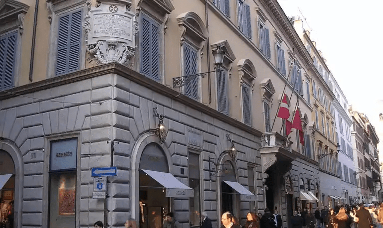 La Villa representa a la Orden de Malta, hogar de los Caballeros, mientras que el resto de Roma, visto a través del ojo de la cerradura, es Italia.